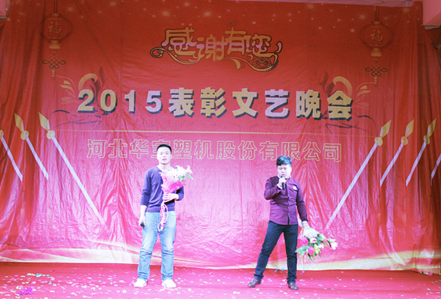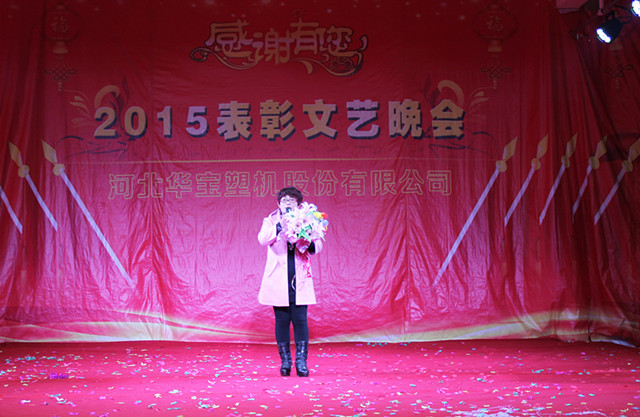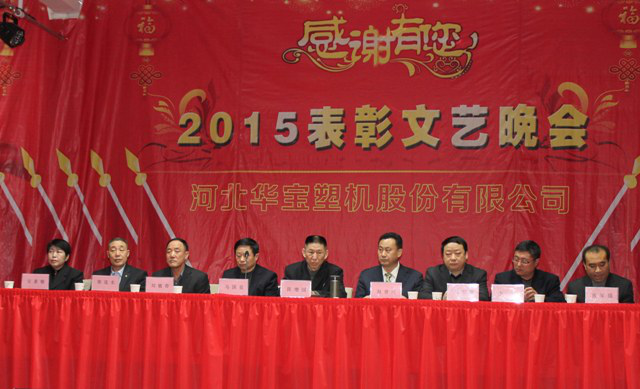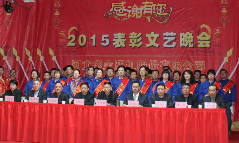 2016年1月29日華寶集團在制品公司隆重召開二〇一五年度表彰文藝晚會,集團公司總經(jīng)理陳增國、副總經(jīng)理馬國良、劉敏奇、趙青欣、劉軍旗、機械公司副經(jīng)理柴連水、制品公司副經(jīng)理安素敏、醫(yī)療用品公司副經(jīng)理李廣、薄膜公司副經(jīng)理張軍強及勞動模范、先進個人、先進集體代表、全體員工1300余人參加了大會。